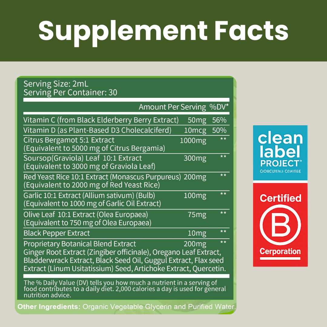 Red yeast rice, citrus bergamot, olive leaf, garlic, soursop, and black pepper extract work in synergy helping clear harmful LDL, calm arterial inflammation, and keep your heart protected.